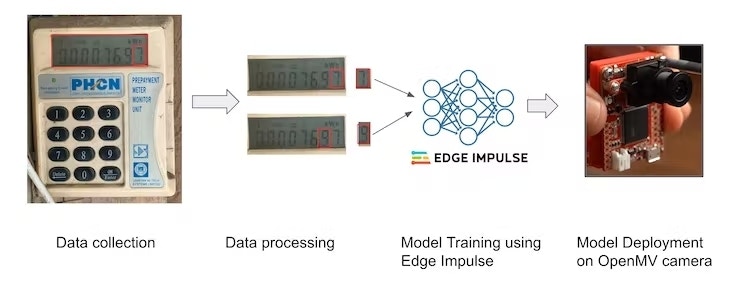 file format and it was transferred to the OpenMV board on the initial setup rig. Since the metering device was placed at a detached location from the apartment, a WiFi range extender was set up to enable communication between the OpenMV’s WiFi Shield and the platform of choice. Essentially, the OpenMV device which houses the model does the computing and sends the live data via MQTT to a dashboard (in this case Adafruit IO) allowing for real-time updates of the credit point pending on the meter. Mission accomplished!
