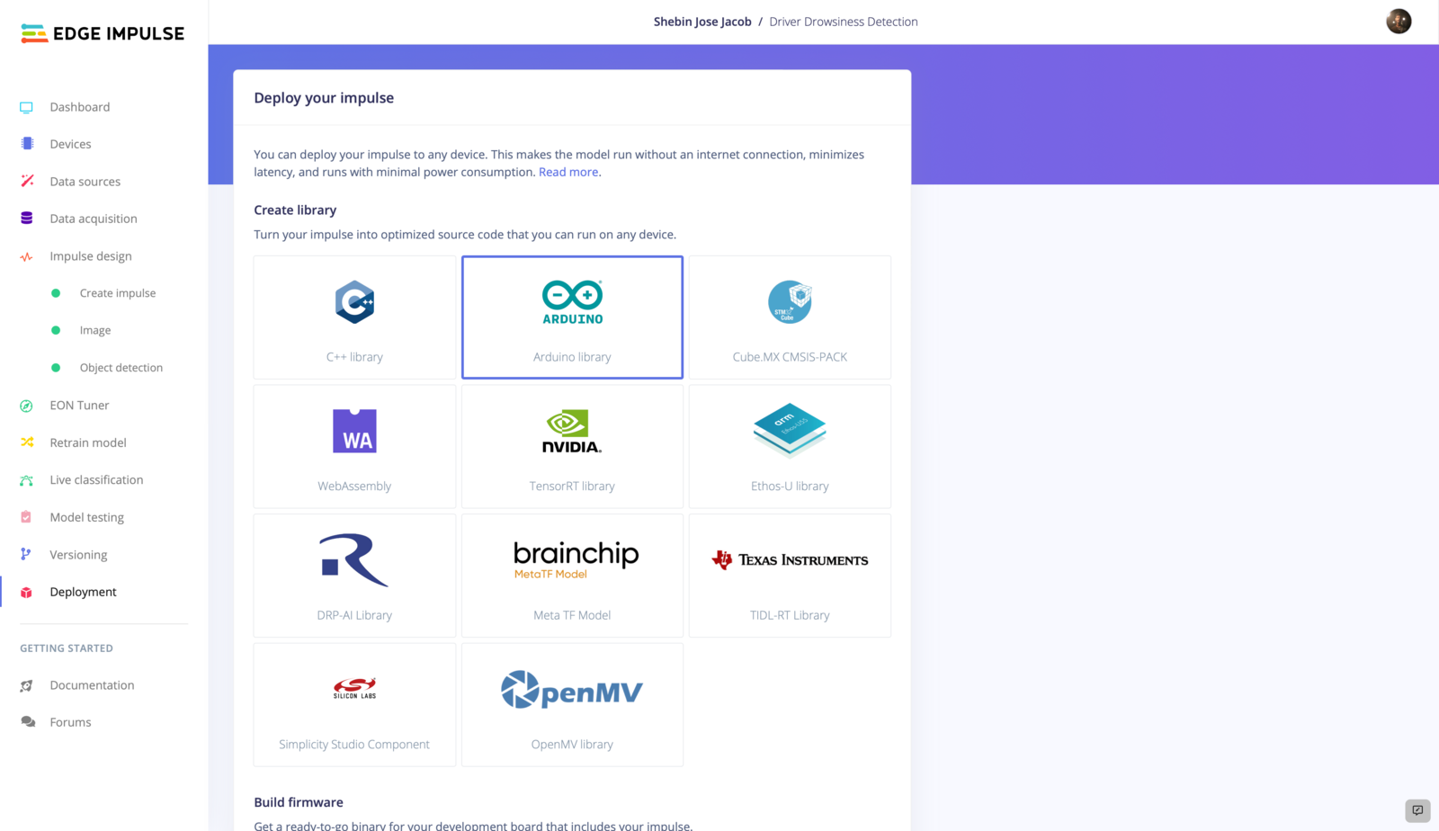 In order to deploy our machine-learning model, we will need to create an Arduino library. This library will contain all of the necessary code and resources required to run the model on the Arduino Nicla Vision.