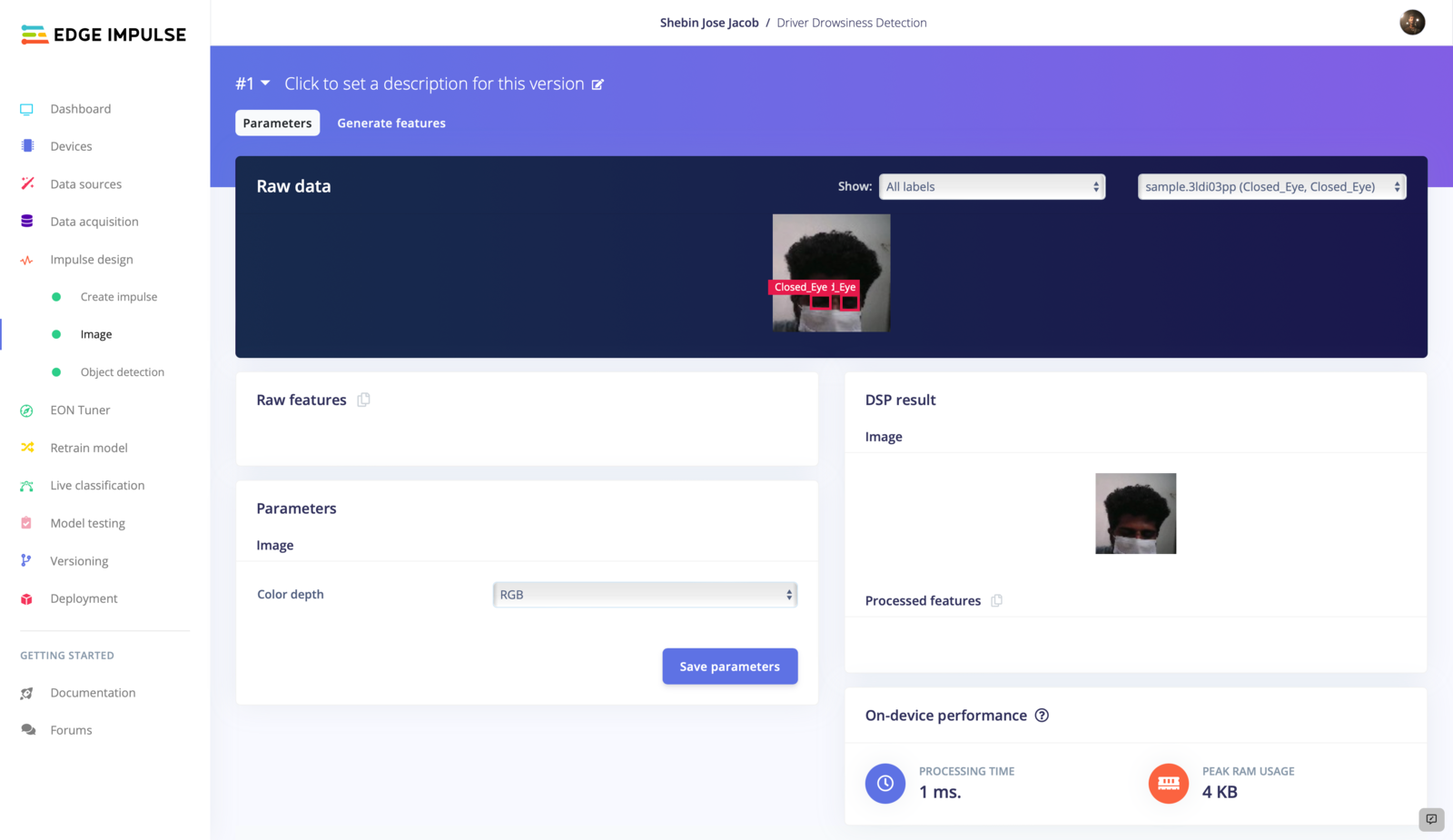 In the next stage of our project, we will focus on generating features. To do this, we will go to the Image tab and select the desired color depth. In our case, we have chosen to use RGB and now we will initiate the feature generation process.