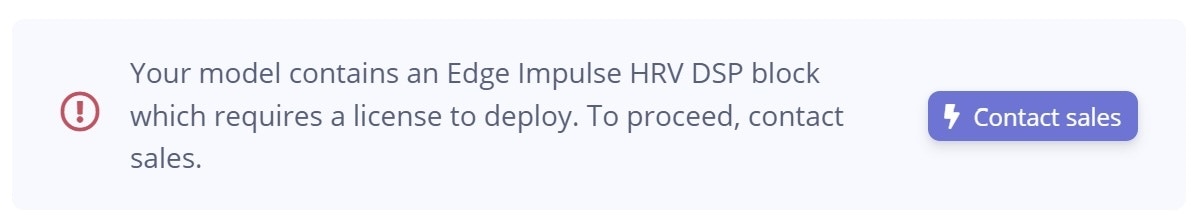 For projects using the Edge Impulse HRV DSP block, a license to deploy is required, so there is a button to authorize this feature.