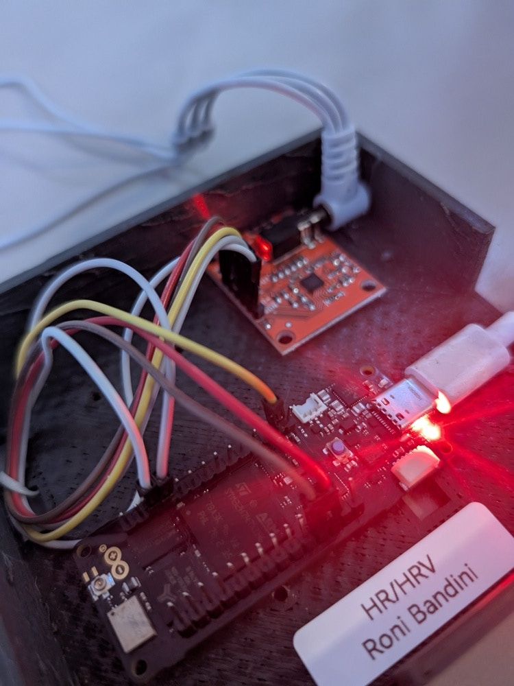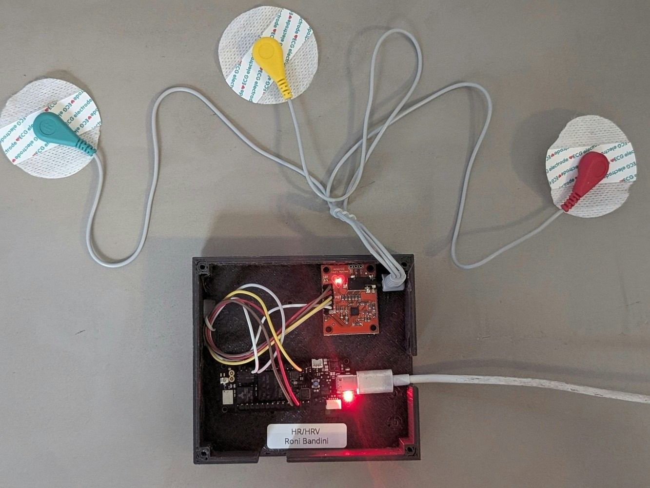 Note: Even with all these precautions, the AD8232 module could still produce a noisy signal. For a real deployment it is recommended to use professional equipment like the Elemyo EMG/ECG module MYO v1.5. For this Public Project synthetic data was used.Close the Serial Monitor and run