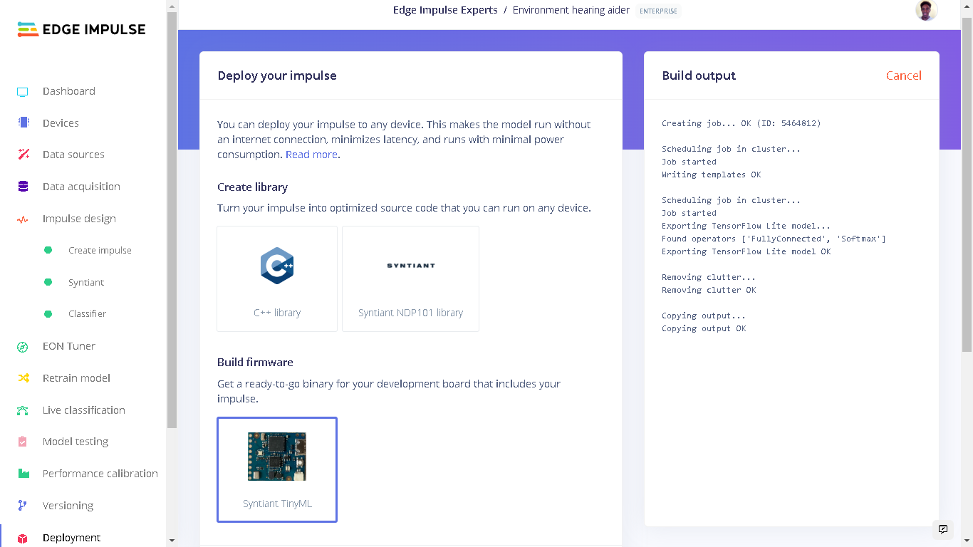 Build Firmware - Syntiant TinyML