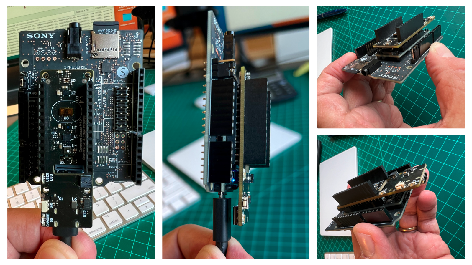 Main Features: Audio input/output - 4ch analog microphone input or 8ch digital microphone input, headphone output Digital input/output - 3.3V or 5V digital I/O Analog input - 6ch (5.0V range) External memory interface - microSD card slot It is important to note that the Spresense main board is a low-power device running on 1.8V (including I/Os). So, installing the main board on the extension board, which has an Arduino UNO form factor and accepts up to 5V on GPIOs, is advised. Besides, the microSD card slot will be used for our Datalog.How to Attach the Spresense Extension Board and the Main Board