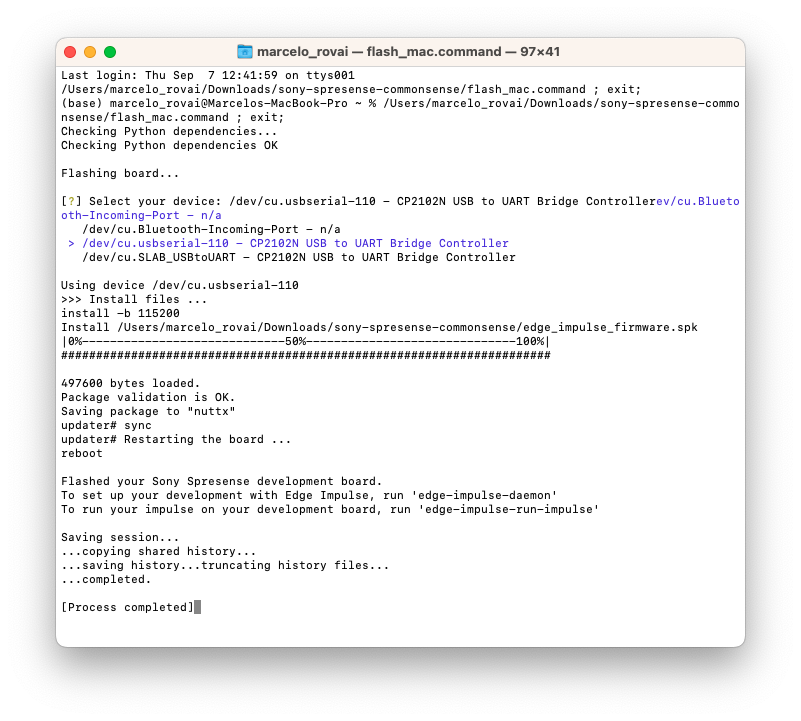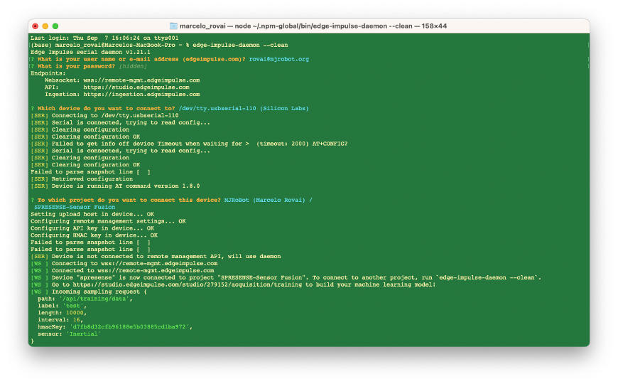 - Connecting the CommonSense board to the Edge Impulse Studio