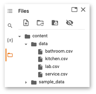 - Select the raw data .csv files on your computer. They should appear in the Files directory on the left panel
