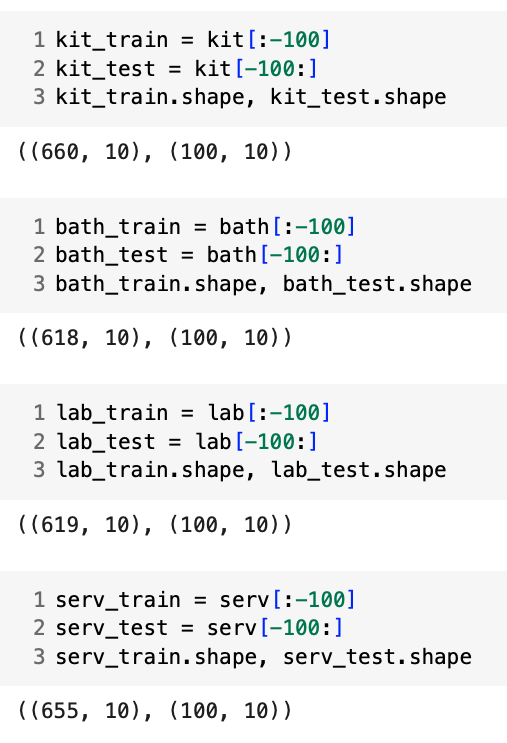The last step in the preparation should be saving both datasets (Train and Test) and also the train mins and ranges parameters to be used during inference.