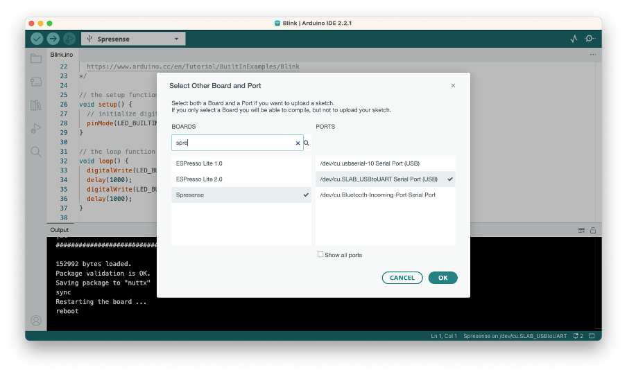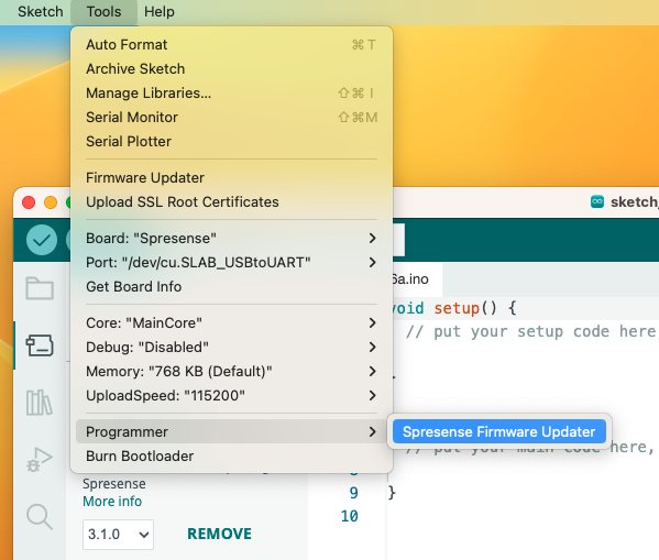 - Sony’s Spresense main board installation and test (Arduino IDE 2.x)