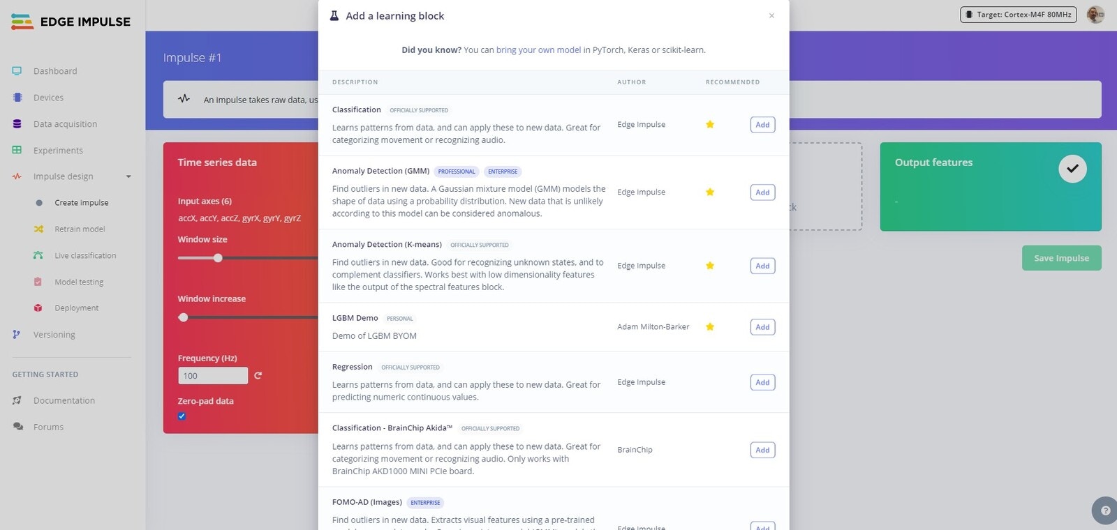 Classification to classify between Normal and Vibrations. Click Add to add the Classification block to your Impulse.