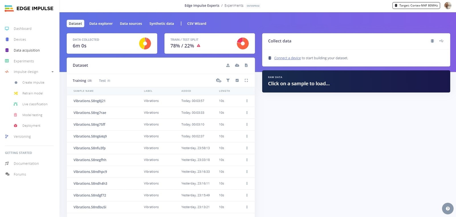 Edge Impulse Project Collected Data