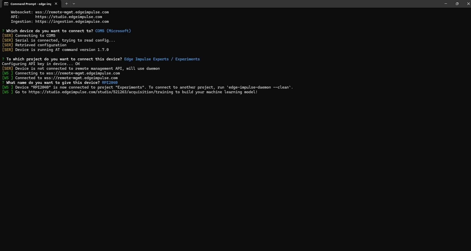 Edge Impulse Project Device Connection