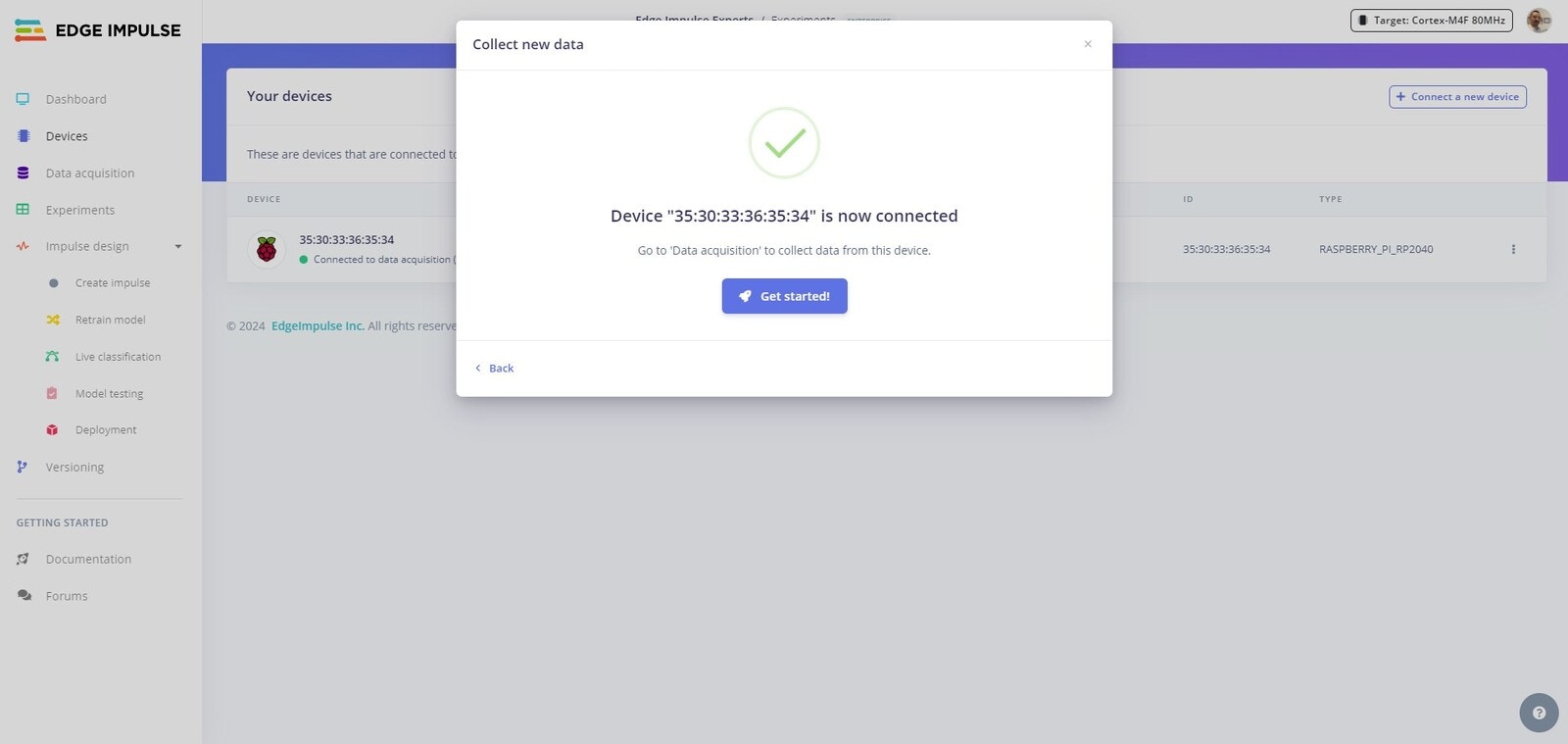 Edge Impulse Project Device Connected