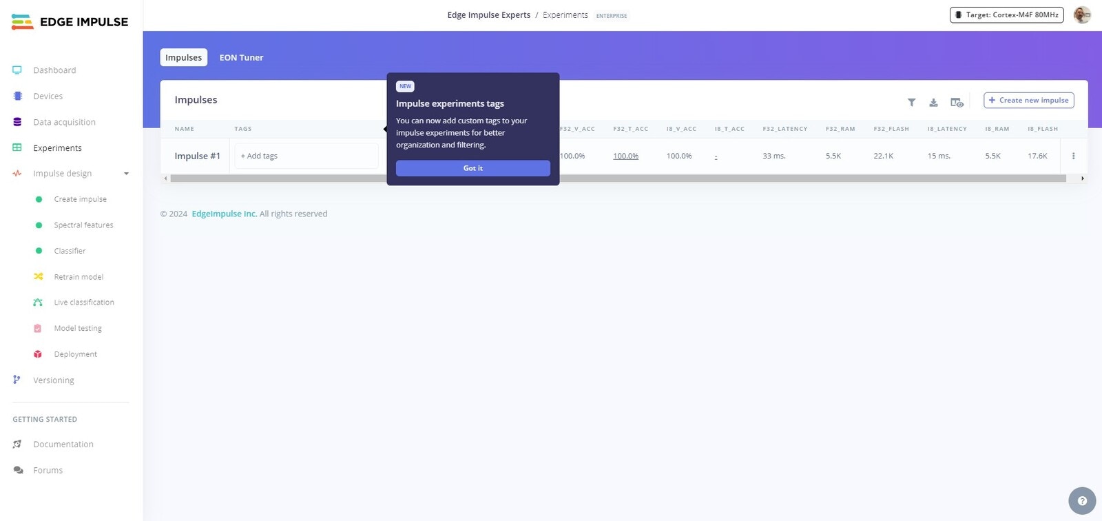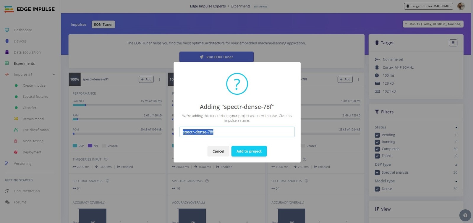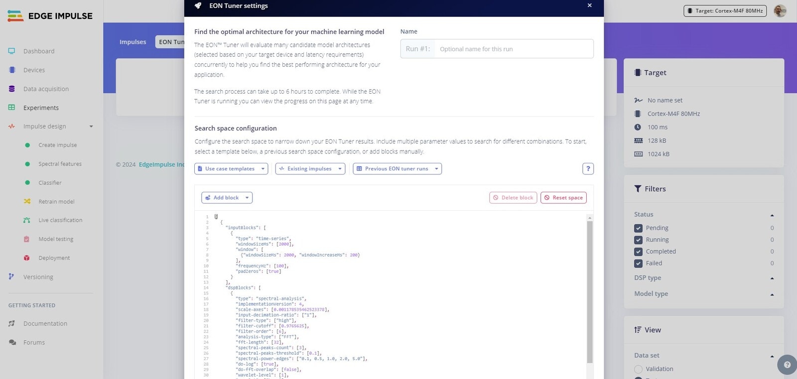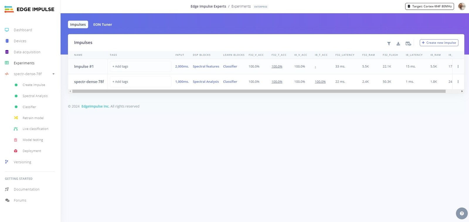 Edge Impulse Project EON Tuner