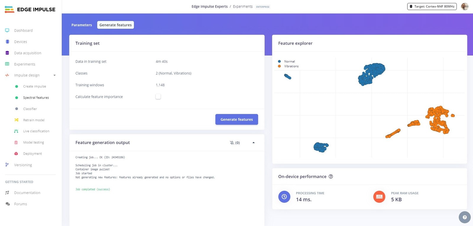 Edge Impulse Project Spectral Analysis Classification Training