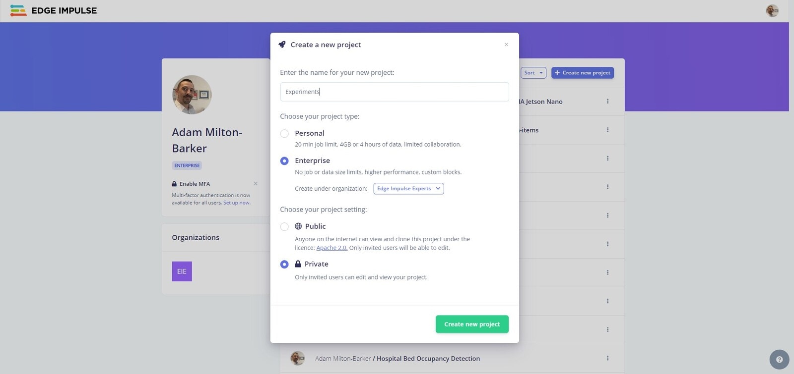 Create Edge Impulse Project