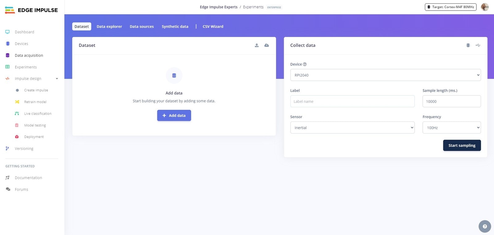 Edge Impulse Project Collect Data