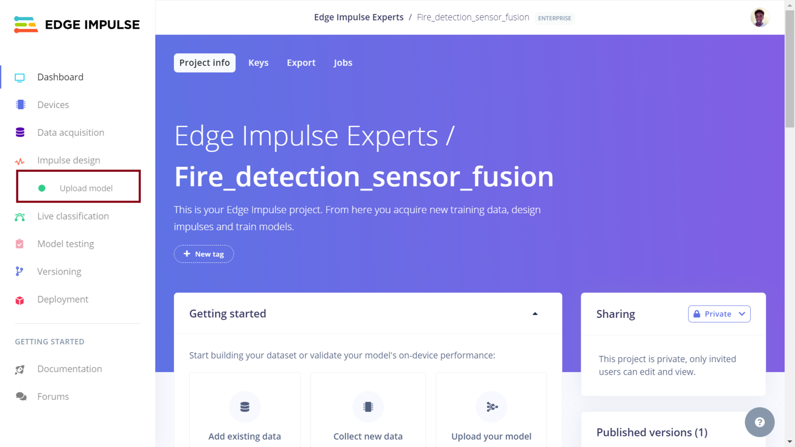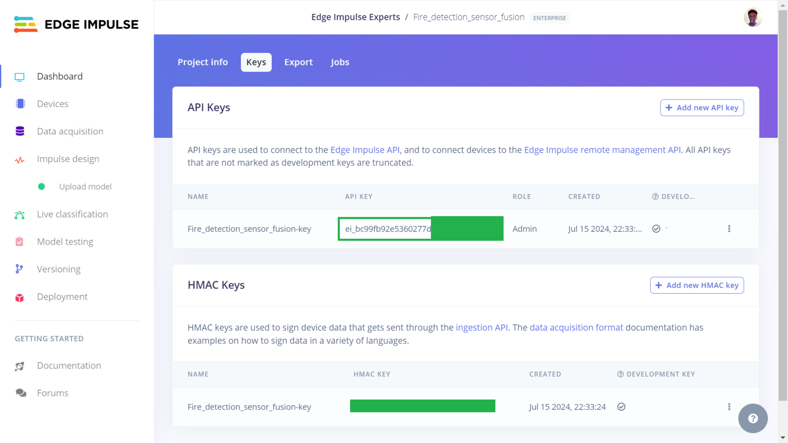 After testing the model, the notebook uses the Edge Impulse Python SDK for profiling and this enables us to get RAM, ROM and inference times of our model on a wide range of hardware from MCUs, CPUs, GPUs and AI accelerated boards, incredibly fascinating! We can see the performance estimates for the Arduino Nano 33 BLE Sense in the screenshot below. Also, during this profiling, the model is uploaded to the Edge Impulse project. You can clone my public Edge Impulse project and access the model using this link: Fire_detection_sensor_fusion.