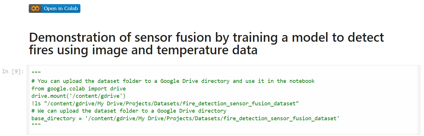 One of our greatest fears is the danger of a fire in our homes, workplaces, on our properties, or even while we are inside vehicles. Although devices and algorithms have been created to detect fires, they have their limitations. In some cases, there are limitations that are obtained by using the vision sensors, while in others a smoke detector can fail to detect a fire if the smoke is not reaching the sensor. To demonstrate sensor fusion, I trained a Machine Learning model to detect if an indoor fire is present using both image and environmental (temperature) data. I used a custom multi-input Convolutional Neural Network (CNN) model to classify if there is a fire or not. To achieve this, I utilized a tensor slicing technique to work with sub-sections of tensors. Each input to the model consists of both an image and a corresponding scalar value (temperature). The model’s input tensor is sliced into an image and temperature tensor. The outputs from these two tensors are then combined and processed further to produce an output (classification of the various classes). The tensor slicing technique is advantageous in this case as well because Edge Impulse does not support multi-input models at the time of this writing. Finally, after training and testing the model, I used the Edge Impulse platform to deploy the sensor fusion model to an Arduino Tiny Machine Learning Kit.