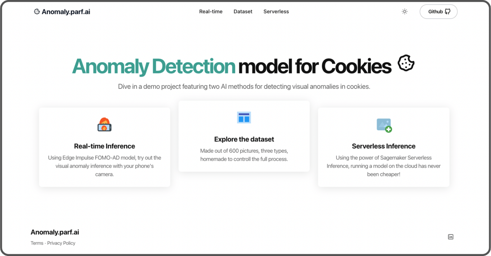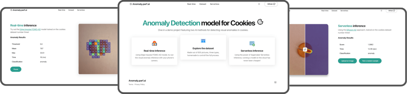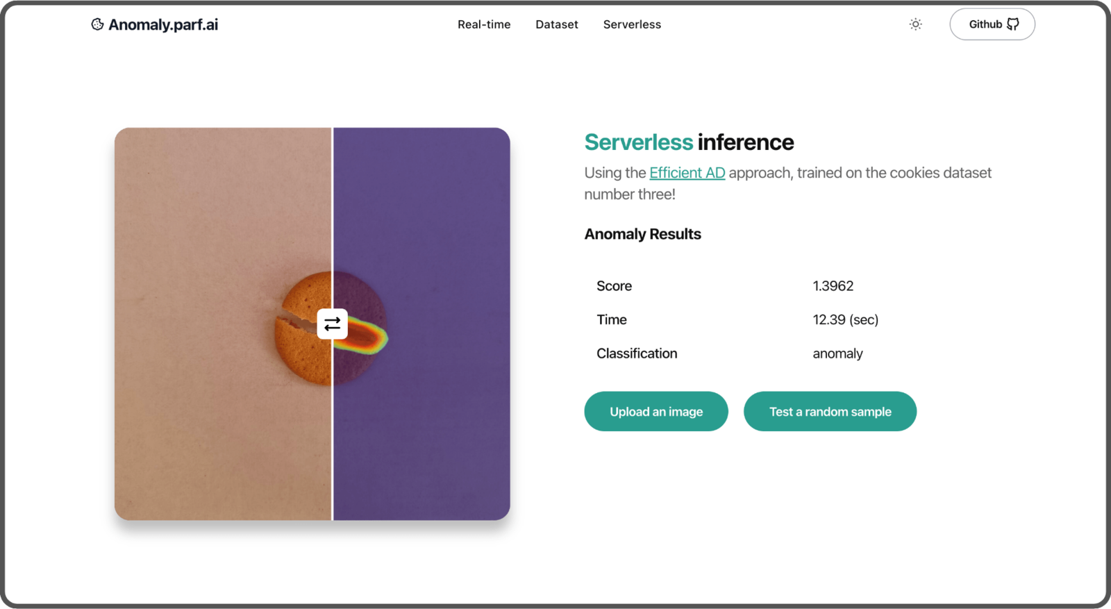 The models are trained and ready to be used, so let’s build an app to showcase our proof of concept. We’ll include two features:- A serverless endpoint using SageMaker Serverless Inference with EfficientAD,