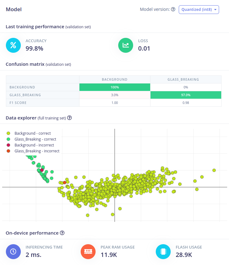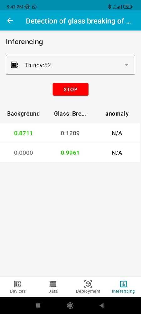 In this article, we have described how to create a glass/window breaking detection system using the Nordic Thingy:53™ development board and Edge Impulse Machine Learning platform. This system can be used in office buildings or other commercial settings to help improve safety and security. We believe that this approach has several advantages over existing solutions, including its low cost, ease of use, and accuracy. With further development, this system could be expanded to include other types of sensors (e.g. cameras) to improve detection accuracy or be used in other applications such as door/window opening detection or intruder detection.