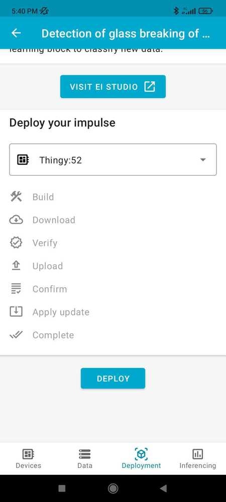 Another way of deploying the model on the edge is using the Nordic nRF Edge Impulse app for iPhone or Android:- Download and install the app for your Android/IoS device.