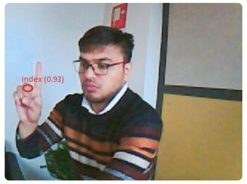In this project, we have built a developed recognition model based on a FOMO algorithm. The result shows that the accuracy of the proposed algorithm on a TinyML device is up to 87.8%. However, since the proposed method’s effectiveness is low, the gesture dataset is insufficient. As a result, we can improve the accuracy of recognition and detection steps with more data and classes.Reference