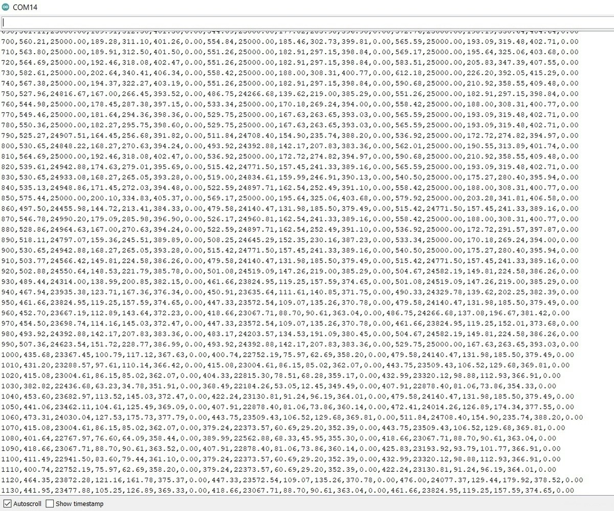 Upload to the Arduino BLE 33 Sense the acquisition script. Place the sensor unit close to the gas or substance and open serial monitor. You should see there multi gas sensor values as CSV records. Uncheck timestamp, then copy and paste the serial monitor screen into a text file. Save that file asharmful.csv and add this header: