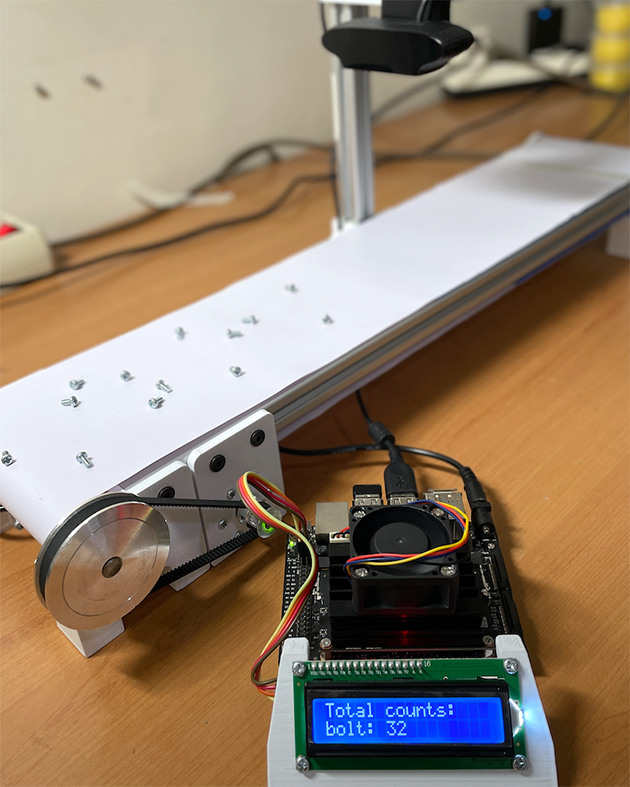 The object counting systems in the manufacturing industry are essential to inventory management and supply chains. They mostly use proximity sensors or color sensors to detect objects for counting. Proximity sensors detect the presence or absence of an object based on its proximity to the sensor, while color sensors can distinguish objects based on their color or other visual characteristics. There are some limitations of these systems though; they typically have difficulty detecting small objects in large quantities, especially when they are not in a row or orderly manner. This can be compounded by a relatively fast conveyor belt. These conditions make the object counting inaccurate.Our Solution
