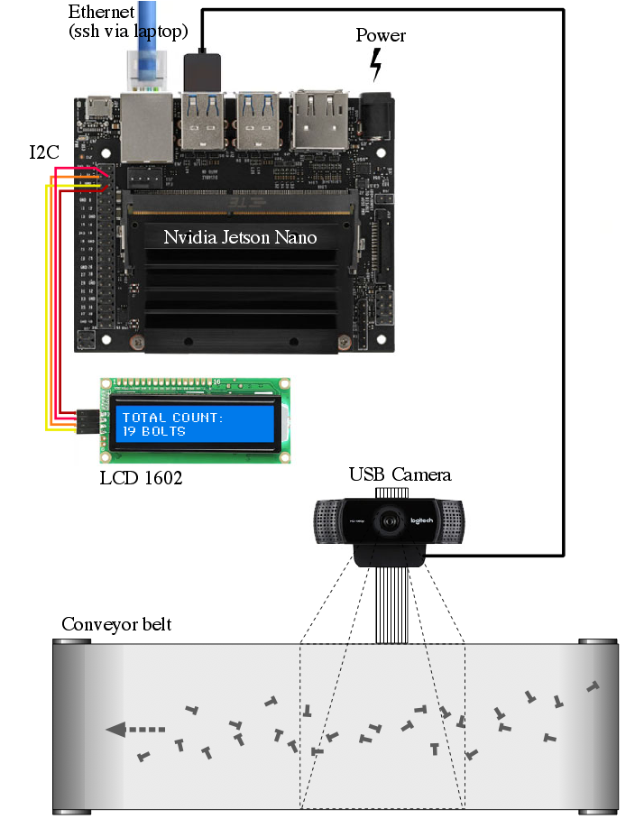 After experimenting with computer vision on the Jetson Nano in a previous project, I believe that a computer vision system with its object detection capabilities can explore its potential to accurately count small objects in large quantities and on fast-moving conveyor belts. Basically, we’ll explore the capability of Edge Impulse’s FOMO models that have been optimized for the GPU in the Jetson Nano. In this project, the production line / conveyor belt will run quite fast, with lots of small objects in random positions, and the number of objects will be counted live and displayed on a 16x2 LCD display. Speed and accuracy are the goals of the project.
