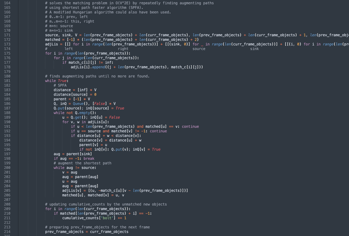 Before we start with Python, we need to install the Edge Impulse Python SDK and clone the repository from the previous Edge Impulse examples. Follow the steps here. With the impressive performance of live inferencing in the Runner, now we will create a Python program to be able to calculate the cumulative count of moving objects taken from camera capture. The program is a modification of Edge Impulse’sclassify.py in examples/image from the linux-python-sdk directory. We turned it into an object tracking program by solving a bipartite matching problem so the same object can be tracked across different frames to avoid double counting. For more detail, you can download and check the python program at this link, https://github.com/Jallson/High_res_hi_speed_object_counting_FOMO_720x720