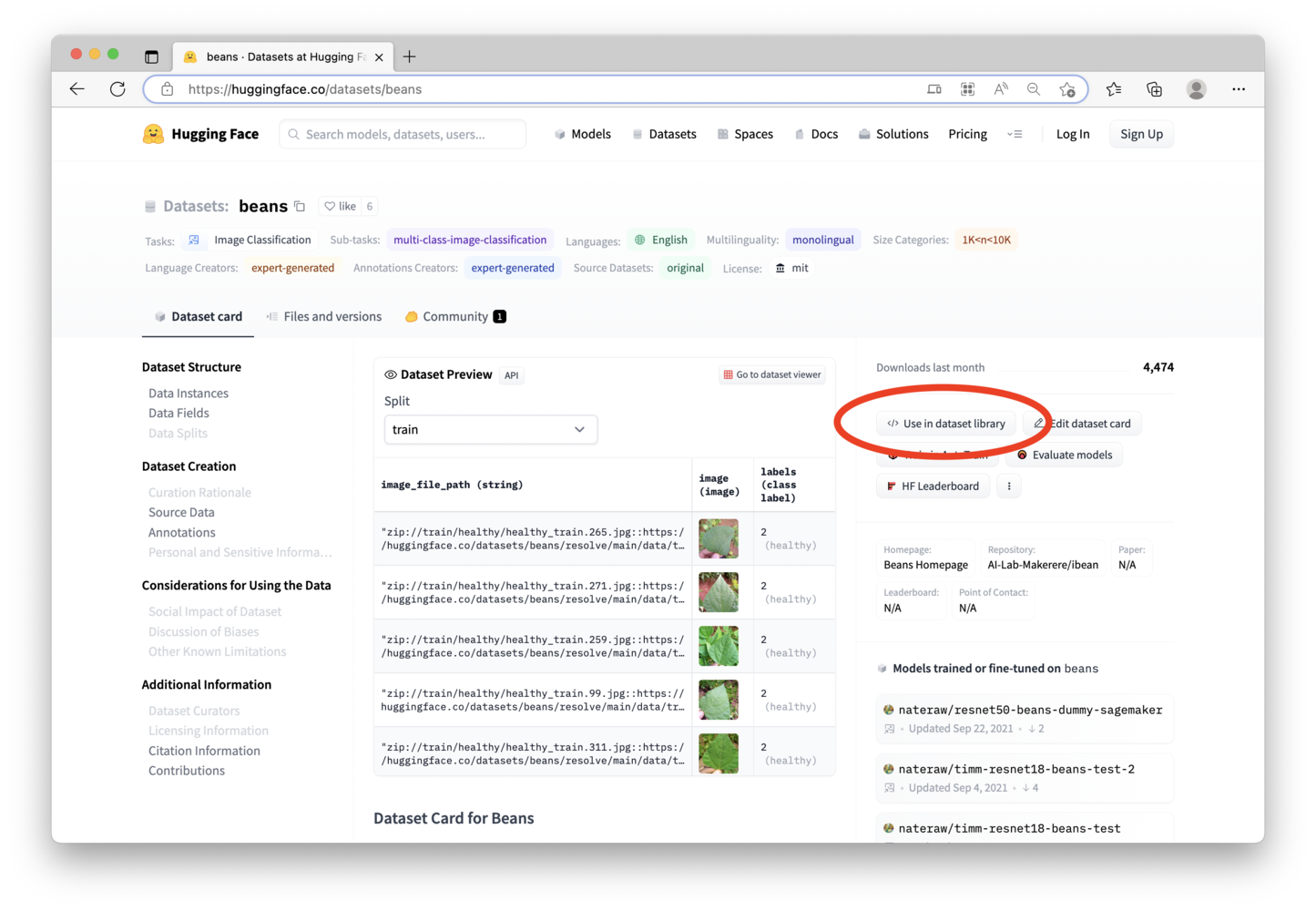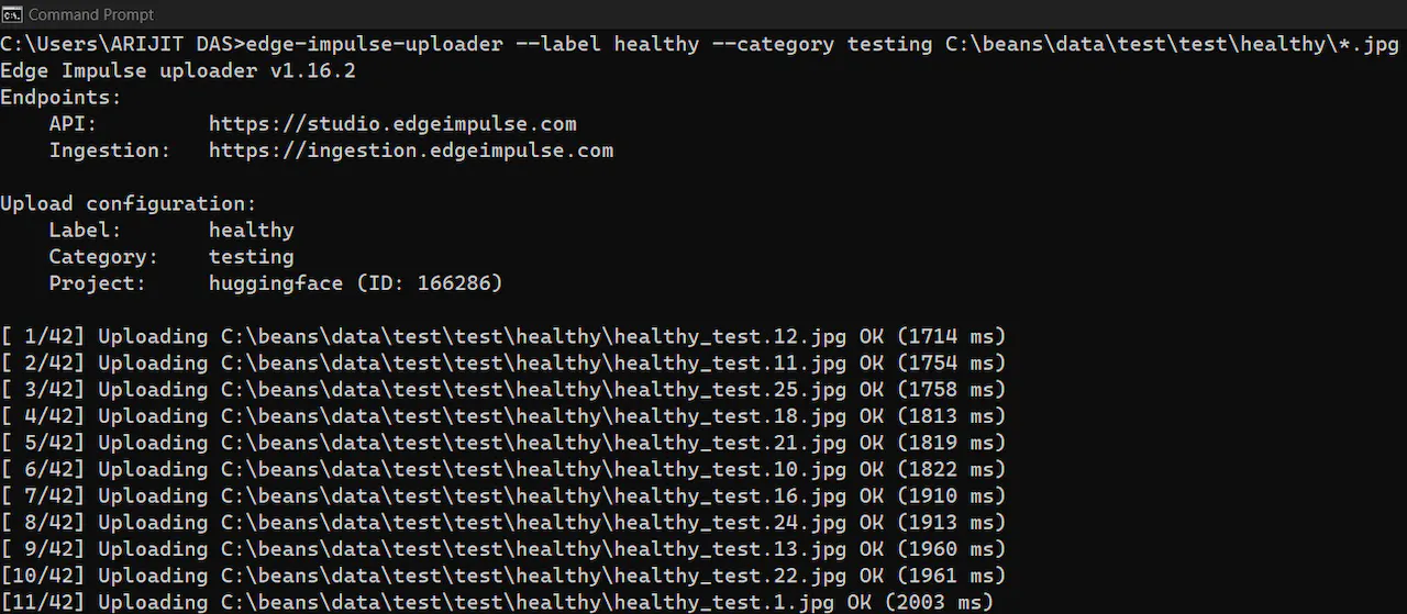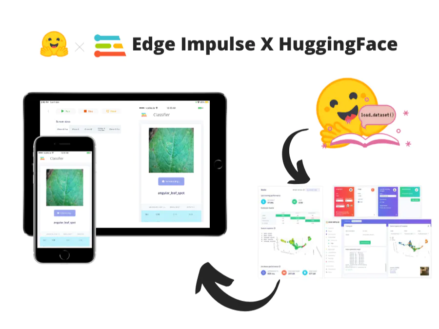 The Hugging Face Hub is a large machine learning community and platform with over 18,000 open-source and publicly available datasets, over 120,000 created models, and applications (called Spaces) that leverage AI to perform a task. This open and community-centric approach allows people to easily collaborate and build ML projects together. The Hub is a central place where anyone can explore, experiment, and work together to build projects with machine learning. Hugging Face Datasets are a library of high quality datasets curated by ML researchers and professionals. We will be using the beans dataset from Hugging Face Datasets in this project, and we’ll upload it to Edge Impulse to use for AI model training and then for deployment on an edge device.Working with the Dataset