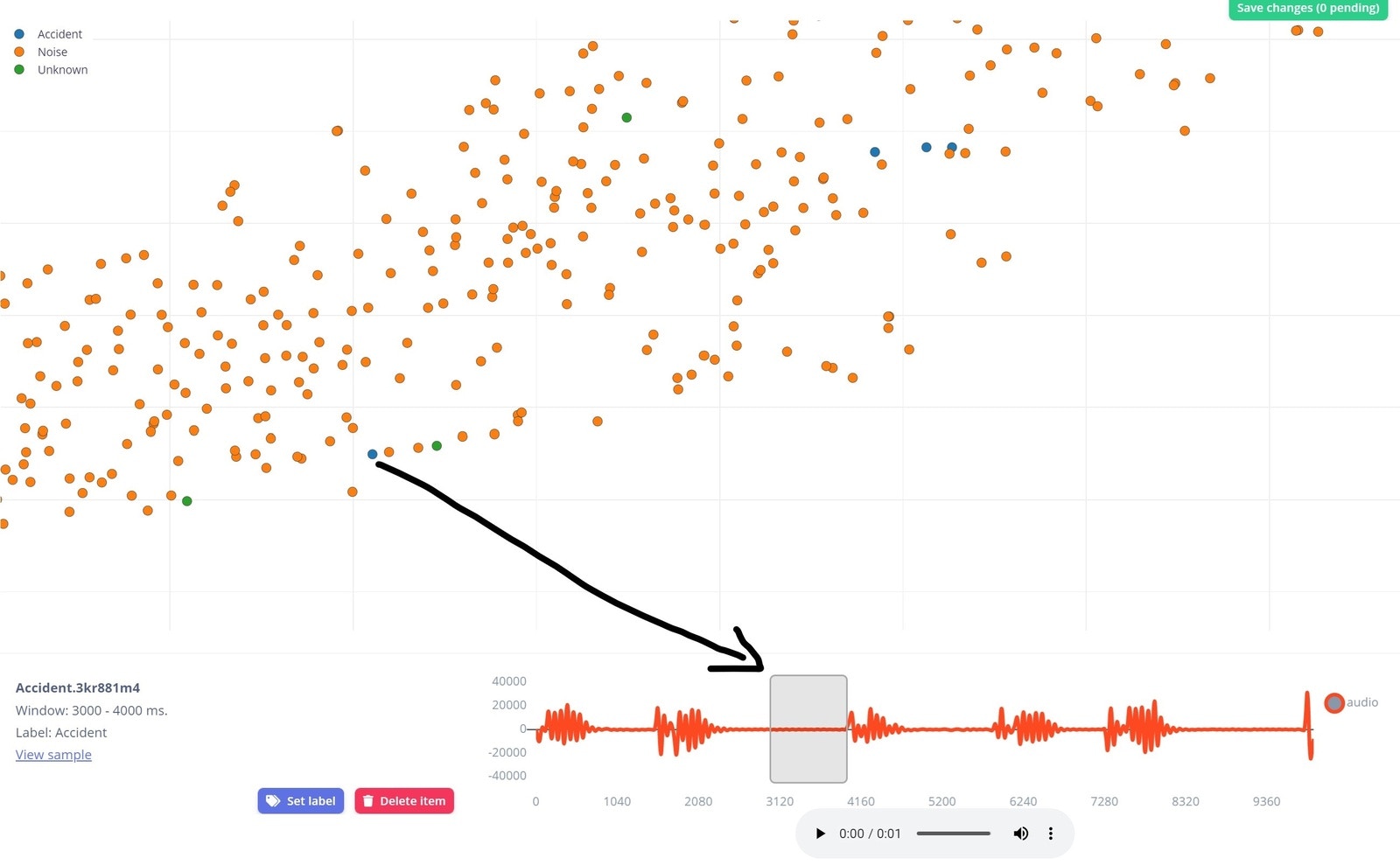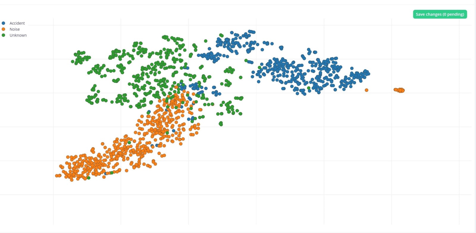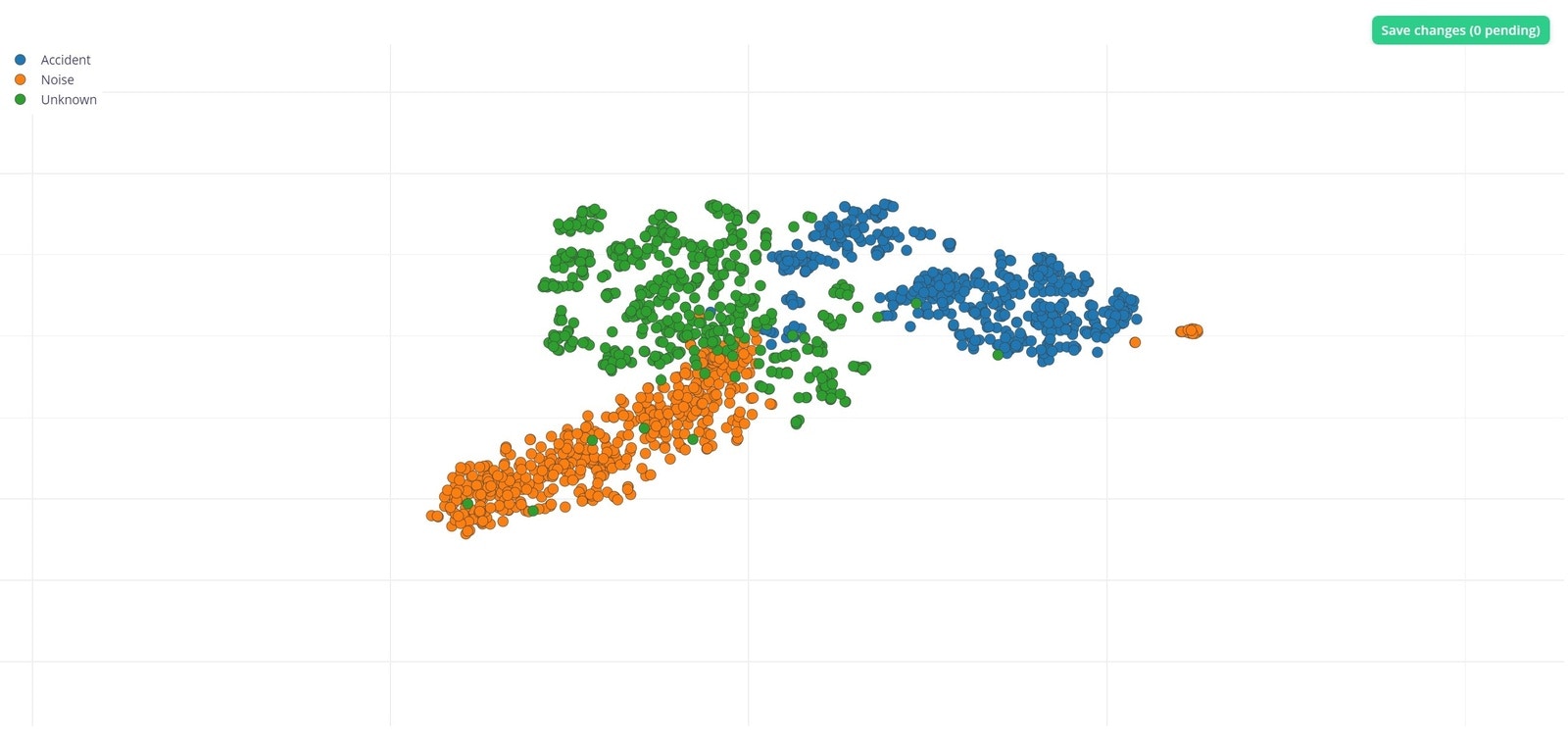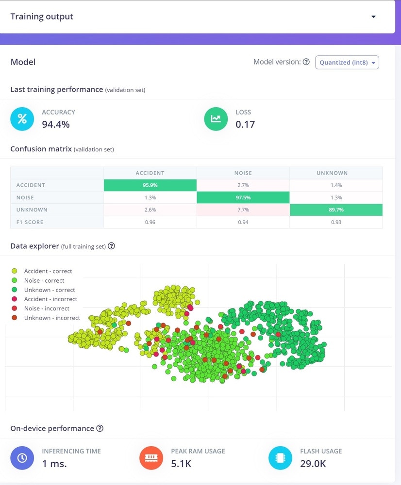 With the Edge Impulse Data explorer, you can represent your dataset visually, detect outliers, and label unlabeled data. This gives us a quick overview of our complete dataset. To learn more about the Data explorer, you can review the documentation here. This is our dataset visualization that was generated using the Data explorer.