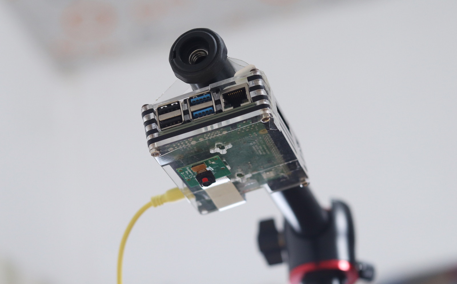 The hardware setup is pretty simple. It consists of a Raspberry Pi 4 Model B and a compatible 5 MP camera module.