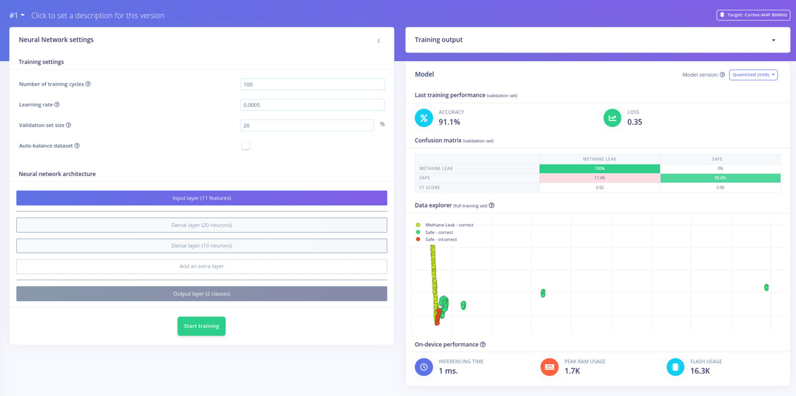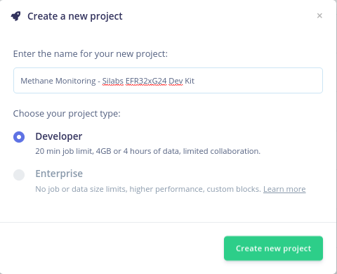 To get started, you will need to create an Edge Impulse project. Edge Impulse is a Machine Learning platform that makes it easy to develop custom algorithms for a variety of applications, including methane monitoring. To create an Edge Impulse project, simply log in or sign up for an account at https://www.edgeimpulse.com/. Once you have an account, click the “Create new project” button on the dashboard. You will be asked to give your project a name and select a category. For this project, we will be using the “Custom classification” template. Give your project a name and description, then click the “Create project” button. With your Edge Impulse project created, you are ready to begin developing your methane detection algorithm.