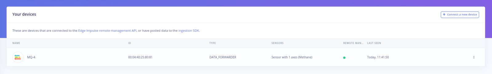 To populate the data pool, connect the board to the computer using a micro-USB cable, launch a terminal and run:edge-impulse-data-forwarder picked up.