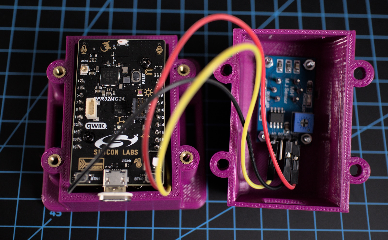 The Silabs EFR32xG24 Dev Kit is the perfect solution for methane monitoring in mines and other workplaces. It features a Machine Learning (ML) hardware accelerator that can be used to develop custom gas detection algorithms. The Silabs EFR32xG24 comes equipped with a pressure sensor, ambient light sensor, and hall-effect sensor, all of which can be used to further customize the monitoring system. To shield the electronic system from the harsh environment specific to the mining industry, we have designed and 3D printed a case that exposes only the transductor of the methane sensor and offers the possibility of mounting the ensemble on a hard surface. The files for the enclosure can be found here.