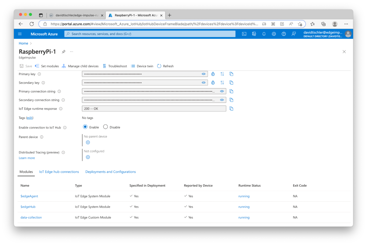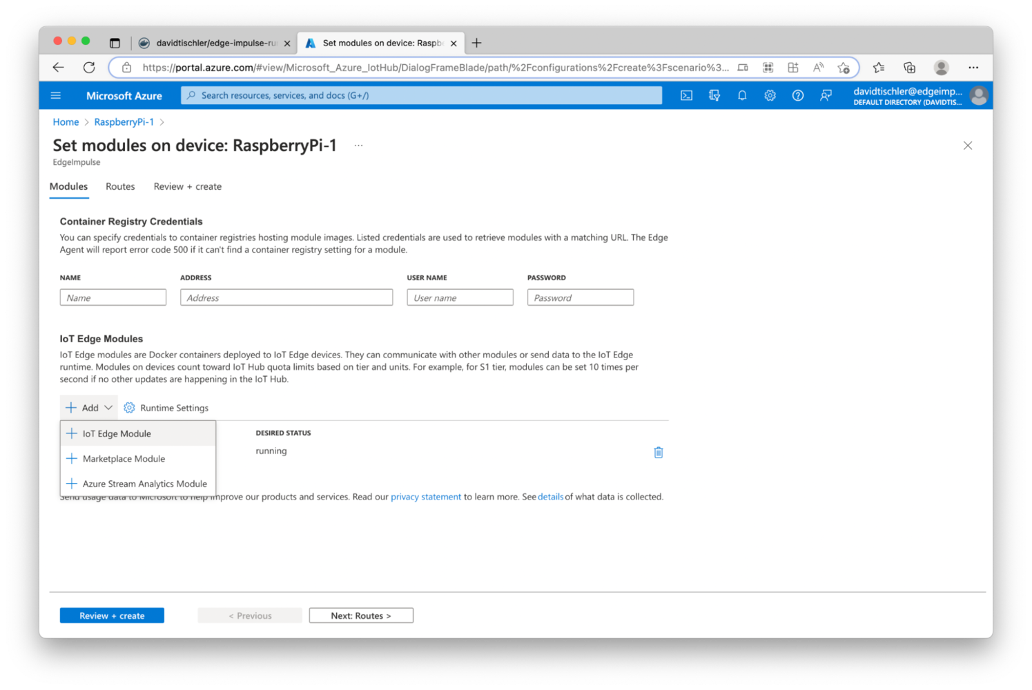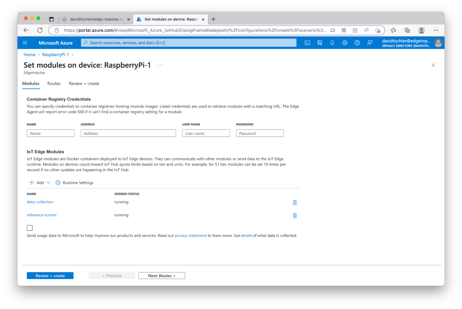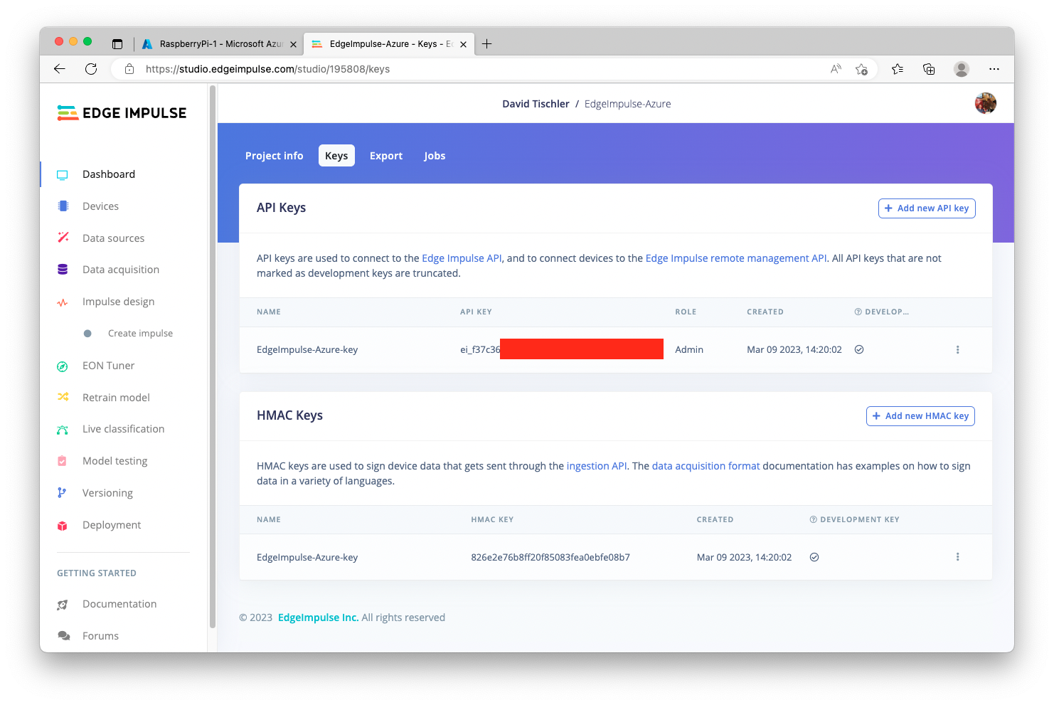 In order to build an effective and high-quality MLOps lifecycle, three major components or phases need to be considered. First, data science and dataset curation tasks must be accomplished, to build, grow, and maintain effective data being fed into the machine learning model creation. Second, model training, and re-training as more data is captured and analyzed, is necessary to build more accurate and effective algorithms and models. Finally, edge device management and update methodologies are needed to push new models to endpoints when needed. The most successful edge AI projects ensure each of these three components are understood, and the right investments are made. In this project, we’ll demonstrate an MLOps pipeline consisting of Edge Impulse and Microsoft Azure IoT Edge, to build a scalable, enterprise-grade edge AI deployment. Edge Impulse will be used to address the first two components, consisting of the dataset curation and the machine learning model creation, and then the final component, the device management and model deployment, will be performed by Azure IoT Edge. We’ll wrap the code in Docker containers, so we’ll make use of small Linux-powered devices as our endpoints, and update them over-the-air for model deployments.Software Used in this Tutorial: