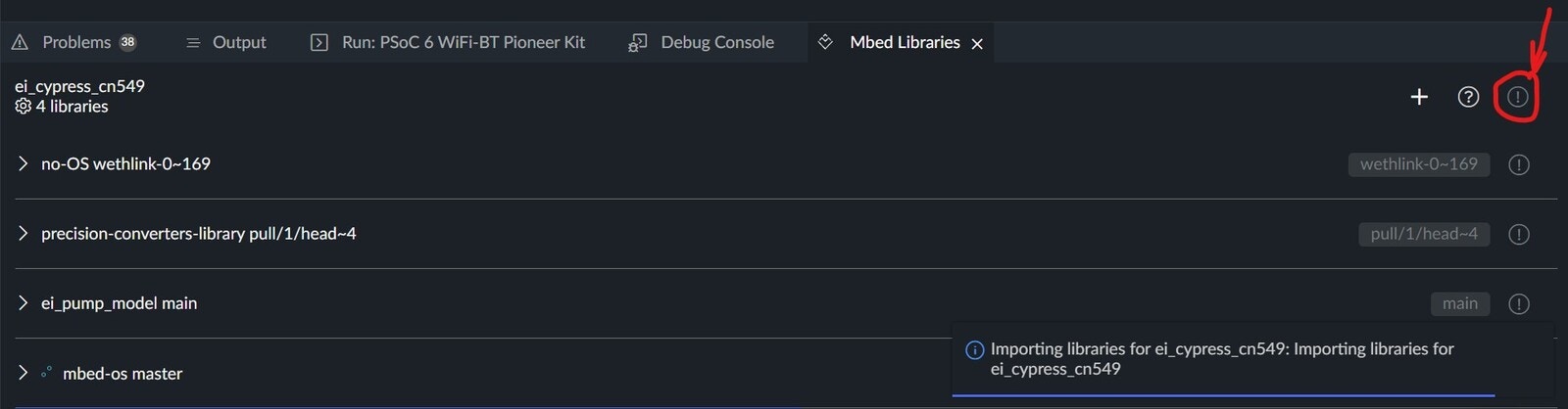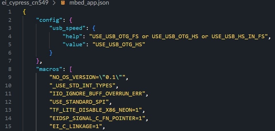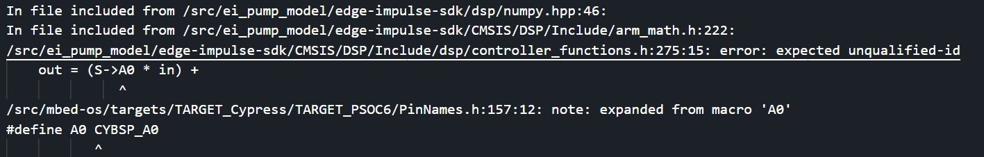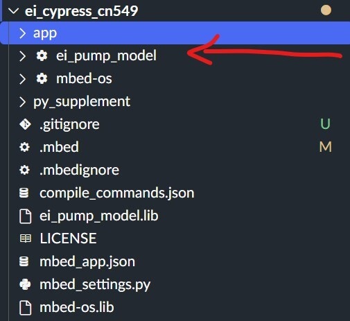 .mbedignorefile in the root of the directory. - Changed pin name in mbed-OS to avoid conflict with the Edge Impulse library. This happens explicitly when using the ARM compiler. With GCC, it builds fine. The modified mbed-OS can be found here. The mbed-OS for our firmware should be cloned from this repository when we import the code into Keil studio.