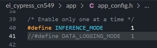 app_config.h file depending upon the intended use. You can either use it for data logging or inferencing. In inference mode, the firmware returns the client two extra bytes of classification results and the accelerometer data.