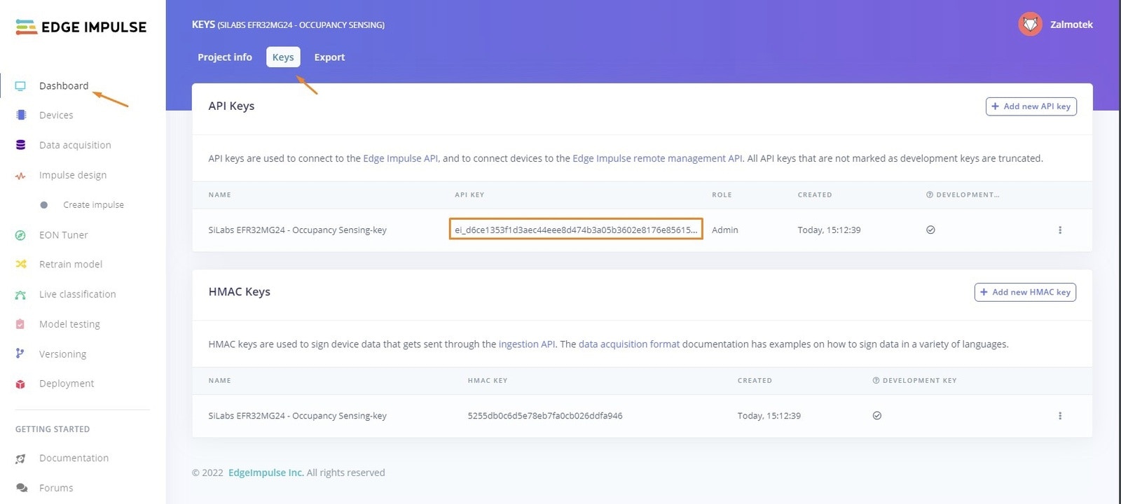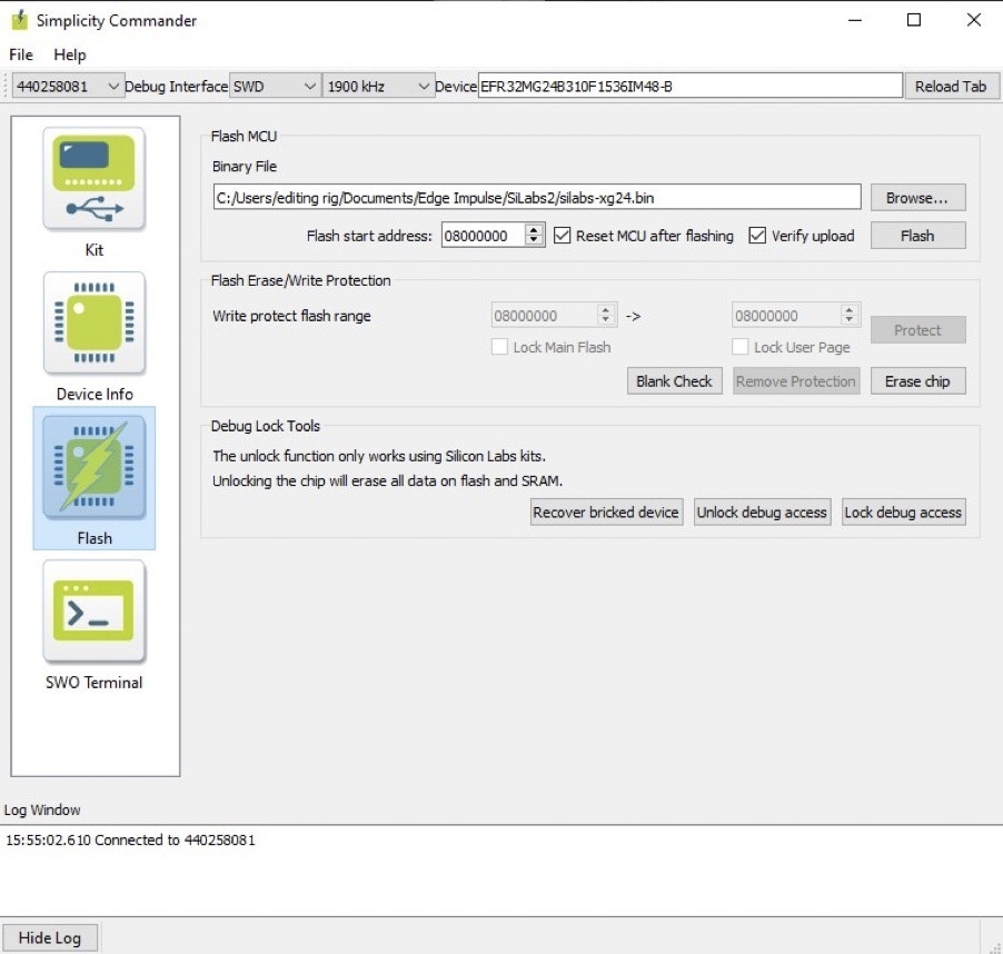 - The base firmware image provided by Edge Impulse - enables you to connect your SiLabs kit to your project and do data acquisition straight from the online platform.