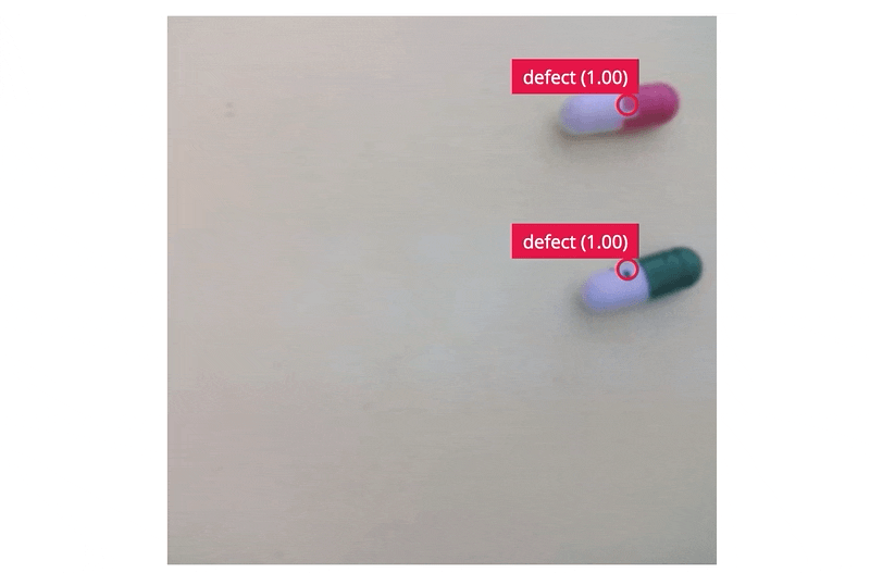 This project aims to use Edge Impulse Studio to collect data and train a model for the anomaly detection task. In the preliminary trials, the supported off-the-shelf image classification or object detection models perform poorly to detect tiny defects on the small capsules. Usually, Generative Adversarial Networks (GAN) or Autoencoder based models are used for anomaly detection for similar datasets. However, the Edge Impulse FOMO algorithm works quite well for the given task. FOMO uses an architecture similar to a standard image classification model which splits the input image into a grid and runs the equivalent of image classification across all cells in the grid independently in parallel. By default the grid size is 8x8 pixels, which means for a 320x320 image, the output will be 40x40 as shown in the image below.