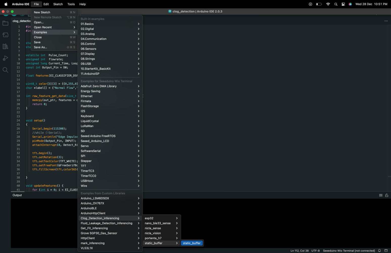 static_buffer.ino file in the editor window, allowing us to make changes to the code as needed.