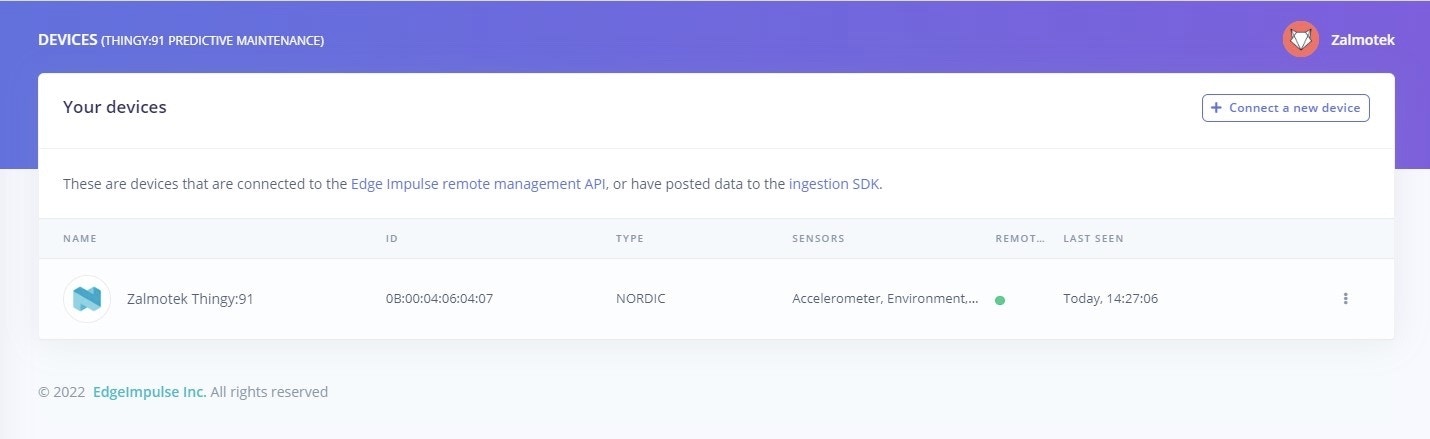 To show you a real world use-case of predictive maintenance we have decided to use the Nordic Thingy:91, an easy-to-use prototyping dev kit for IoT projects, packed with a multitude of sensors relevant for our application: Low-power accelerometer, temperature, and pressure sensors. The on-board nRF9160 System-in-Package (SiP) supports LTE-M, NB-IoT and GNSS if you wish to send the data in the cloud and the nRF52840 allows the development of Bluetooth LE applications. The 64 MHz Arm® Cortex®-M33 CPU is great for running a TinyML model on the edge used to detect anomalies while the machinery is running. Our approach to building a predictive maintenance solution based on the Nordic Semi Thingy:91 is to attach it mechanically to a machine and collect accelerometer data during normal functioning. After a proper data set is acquired, we will train a TinyML model based on an Anomaly Detection Neural Network using Edge Impulse that will detect anomalies.Hardware requirements