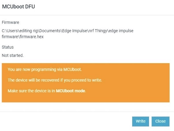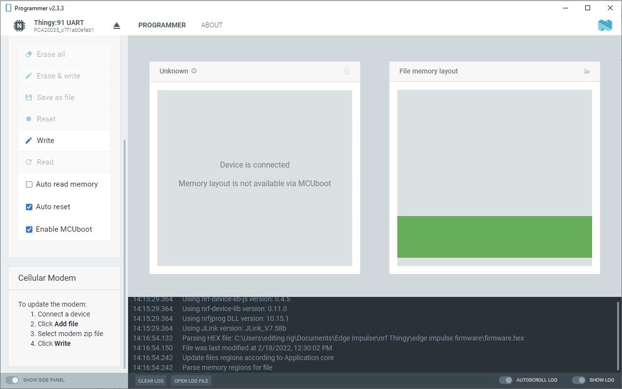 First thing first, to collect our dataset, we must upload the Thingy:91 firmware provided by Edge Impulse on the dev kit.- Install the latest version of nRF Connect for Desktop from the official source on your OS of choice.