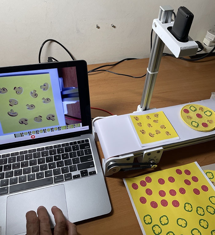 My Python program (topping.py) can be downloaded at this link: https://github.com/Jallson/PizzaQC_Conveyor_Belt/blob/main/topping.py