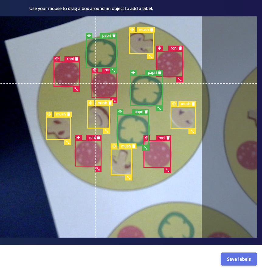 A computer vision system for quality/quantity inspection of product manufacturing on a conveyor belt. The setting of this project will be in a hypothetical mass-production pizza factory where a Jetson Nano with a camera will detect and count the number of toppings for each pizza that passes by on a conveyor belt to ensure the quantity of toppings (pepperoni, mushroom, and paprika) meets a predefined quality standard. Speed, reliability, and cost efficiency are the goals for this project.Description