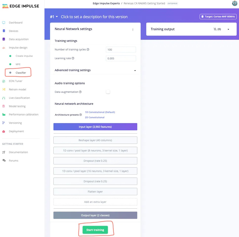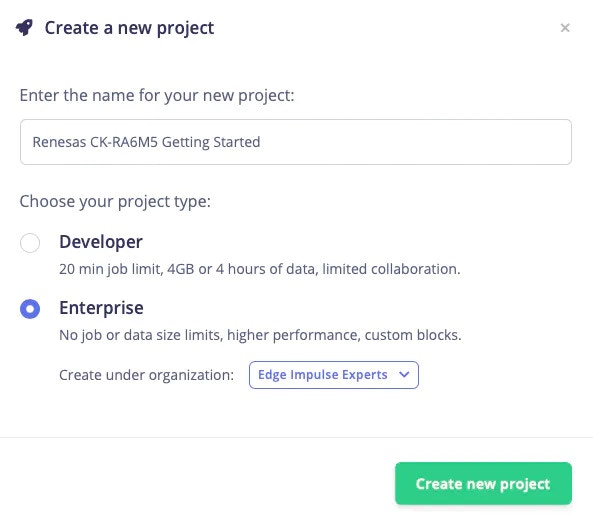 In order to connect the CK-RA6M5 board to the Edge Impulse Studio, we need to upgrade the board’s firmware. Please follow the official Edge Impulse guide to update its firmware: Firmware Update Guide Once the board is flashed with Edge Impulse firmware, the real magic starts.Edge Impulse Project