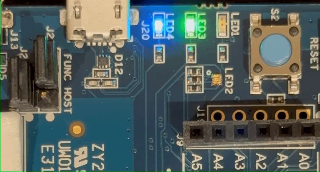 - LED4 Blue – Blinking at 1hz frequency