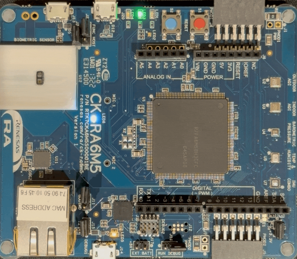 The Renesas CK-RA6M5 Cloud Kit enables users to securely connect to the cloud and explore the features of the Cortex M33-based Renesas RA6M5 group of MCUs and cloud services. This development board can run machine-learning models and is officially supported by Edge Impulse. This is a Getting Started Guide for the Renesas CK-RA6M5 board with Edge Impulse. Here we will connect the board to the Edge Impulse Studio, collect sensor data directly from the board, prepare a machine learning model using the collected data, deploy the model back to the board, and perform inferencing locally on the board. Let’s get started!Unboxing