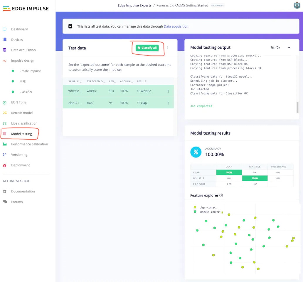 The next step is testing!! Let’s see how well our model performs when run locally on the Renesas CK-RA6M5 board: