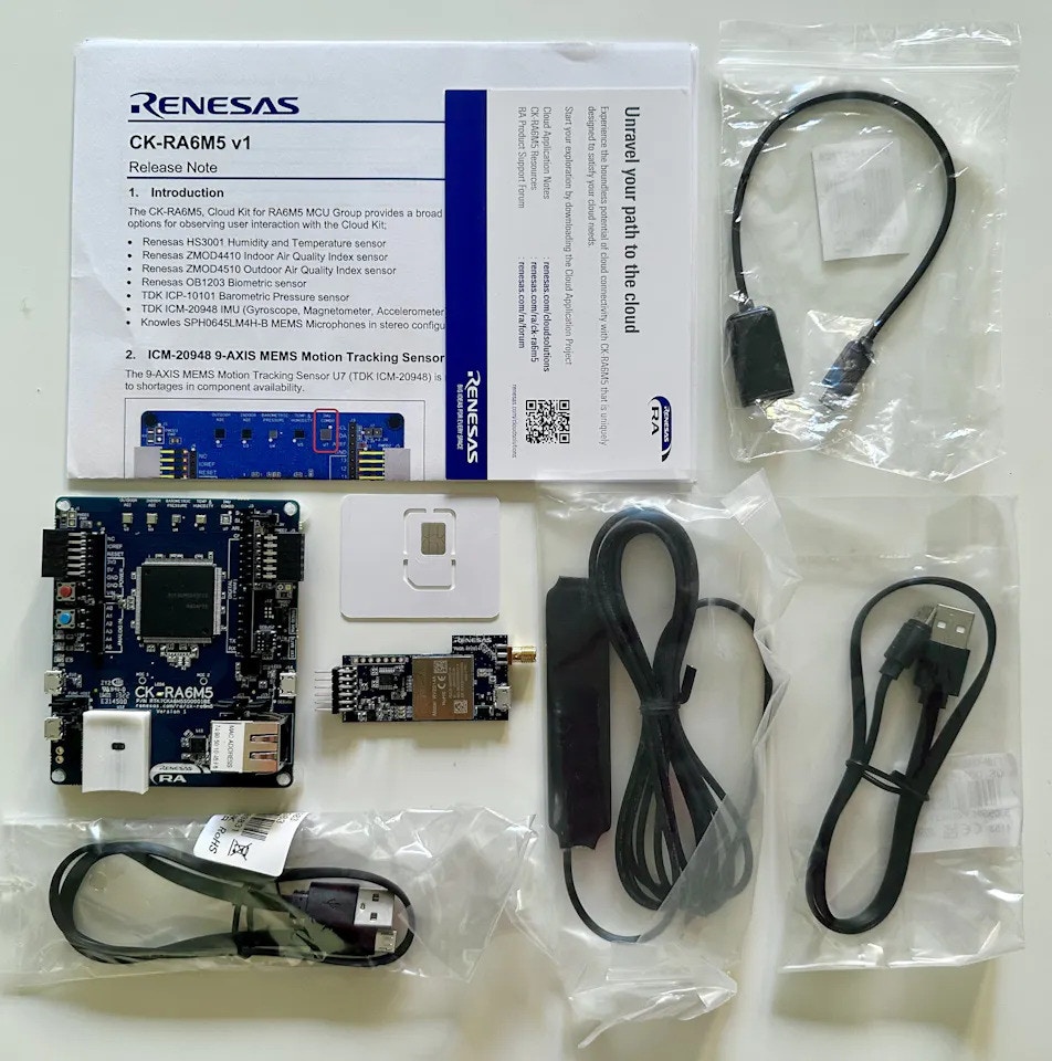 The Cloud Kit comes with the following items in the box:- The CK-RA6M5 development board